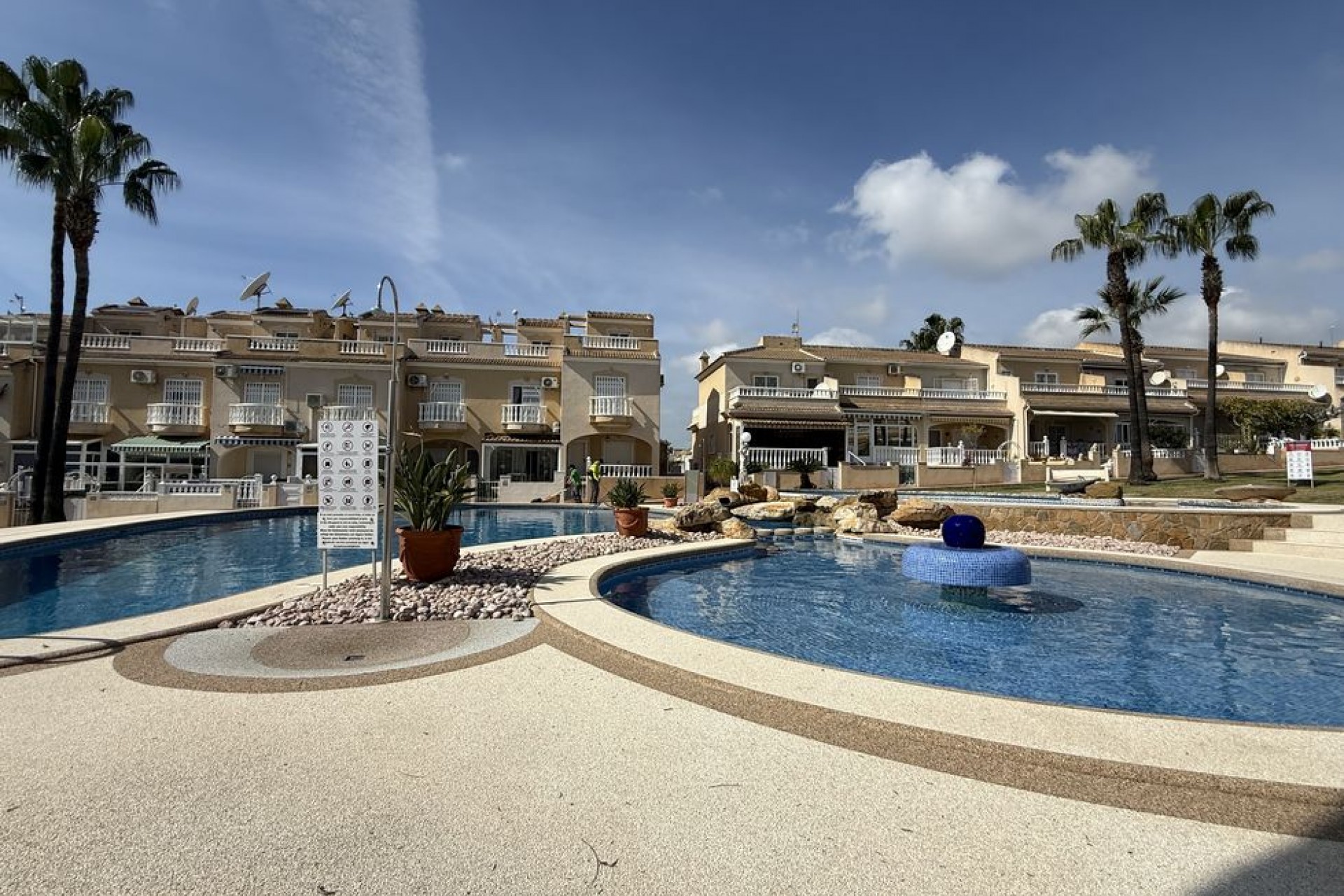 Cette charmante maison de ville se situe dans le quartier très prisé de Doña Pepa à Ciudad Quesada, Rojales, sur la magnifique Costa Blanca Sud. Idéalement située à proximité de nombreux commerces et services (bars, restaurants, boutiques, services médicaux), elle se trouve également à quelques pas du centre de Ciudad Quesada, ce qui en fait un choix parfait pour y vivre à l'année ou pour les vacances. La maison dispose d'une spacieuse terrasse exposée est, idéale pour profiter du soleil matinal et de la vie en plein air. À l'intérieur, le rez-de-chaussée offre un espace de vie lumineux et ouvert combinant salon, salle à manger et cuisine, créant ainsi un espace convivial et confortable. La cuisine donne accès à un petit patio à l'arrière, qui dessert également un placard et un espace de rangement pratiques. À l'arrière de la maison se trouve un parking privé avec un portail donnant directement accès à la piscine commune. Une salle de bain est également située au rez-de-chaussée pour plus de commodité. À l'étage, la propriété offre deux chambres spacieuses, chacune bénéficiant d'un balcon privatif baigné de lumière naturelle et offrant un espace extérieur agréable. Une grande salle de bains familiale avec baignoire d'angle dessert cet étage. Les deux chambres sont équipées de placards intégrés et de la climatisation. Un nouveau climatiseur a récemment été installé dans le salon au rez-de-chaussée, garantissant un confort optimal toute l'année. Vendue entièrement meublée, la propriété est prête à être habitée ou louée immédiatement. Idéalement située à Doña Pepa, à proximité de toutes les commodités et à quelques pas du centre de Ciudad Quesada, cette maison de ville représente une excellente opportunité. Exclusivement proposée par notre agence, cette propriété mérite d'être visitée pour en apprécier pleinement tous les atouts. Ciudad Quesada fait partie de la commune de Rojales et se situe à environ 8 kilomètres à l'intérieur des terres, sur la Costa Blanca, de Guardamar de la Segura. Les aéroports d'Alicante et de Murcie sont tous deux à 50 kilomètres et la plage la plus proche est à 10 minutes en voiture. Le centre-ville de Ciudad Quesada regorge de boutiques, bars, restaurants, du golf de La Marquesa et d'un parc aquatique. Vous aurez l'embarras du choix parmi de nombreux parcours de golf de championnat : Villamartin, Las Ramblas, La Finca et Campoamar sont les plus proches. Beaucoup d'autres sont accessibles en moins d'une heure de route. Le marché de Torrevieja et les marchés environnants sont ouverts tous les jours pendant l'été. Les lacs salés abritent une faune abondante, notamment des flamants roses. La région bénéficie d'un climat très sain. Les nombreuses plages Pavillon Bleu de Torrevieja, Guardamar del Segura et Santa Pola sont toutes à moins de 15 minutes en voiture.