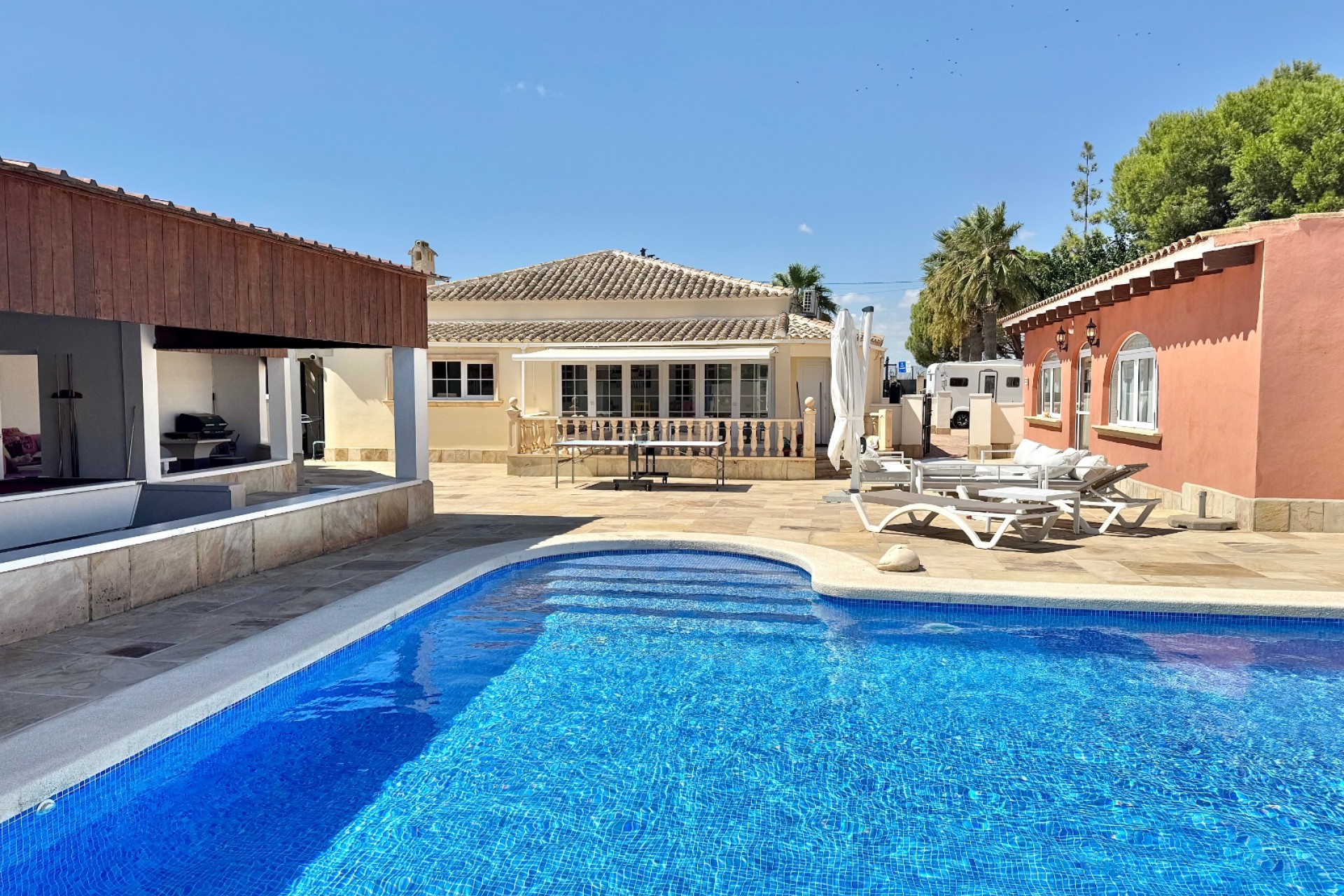 In the heart of Las Heredades lies this exclusive estate, a unique retreat that combines space, comfort, and rural charm. The main house, with 440 m² of living space, offers bright, well-designed rooms, where each bedroom has its own en-suite bathroom to ensure maximum privacy and comfort. Set on a 2,300 m² plot, the property is perfectly divided into: 400 m² dedicated to horses, with an arena and 3 stables. A private swimming pool, ideal for relaxing in a peaceful setting. A separate guest apartment, perfect for visitors or providing extra privacy. This estate is the perfect balance between country living and modern comfort, designed for those seeking a property with character, versatility, and details that make the difference.