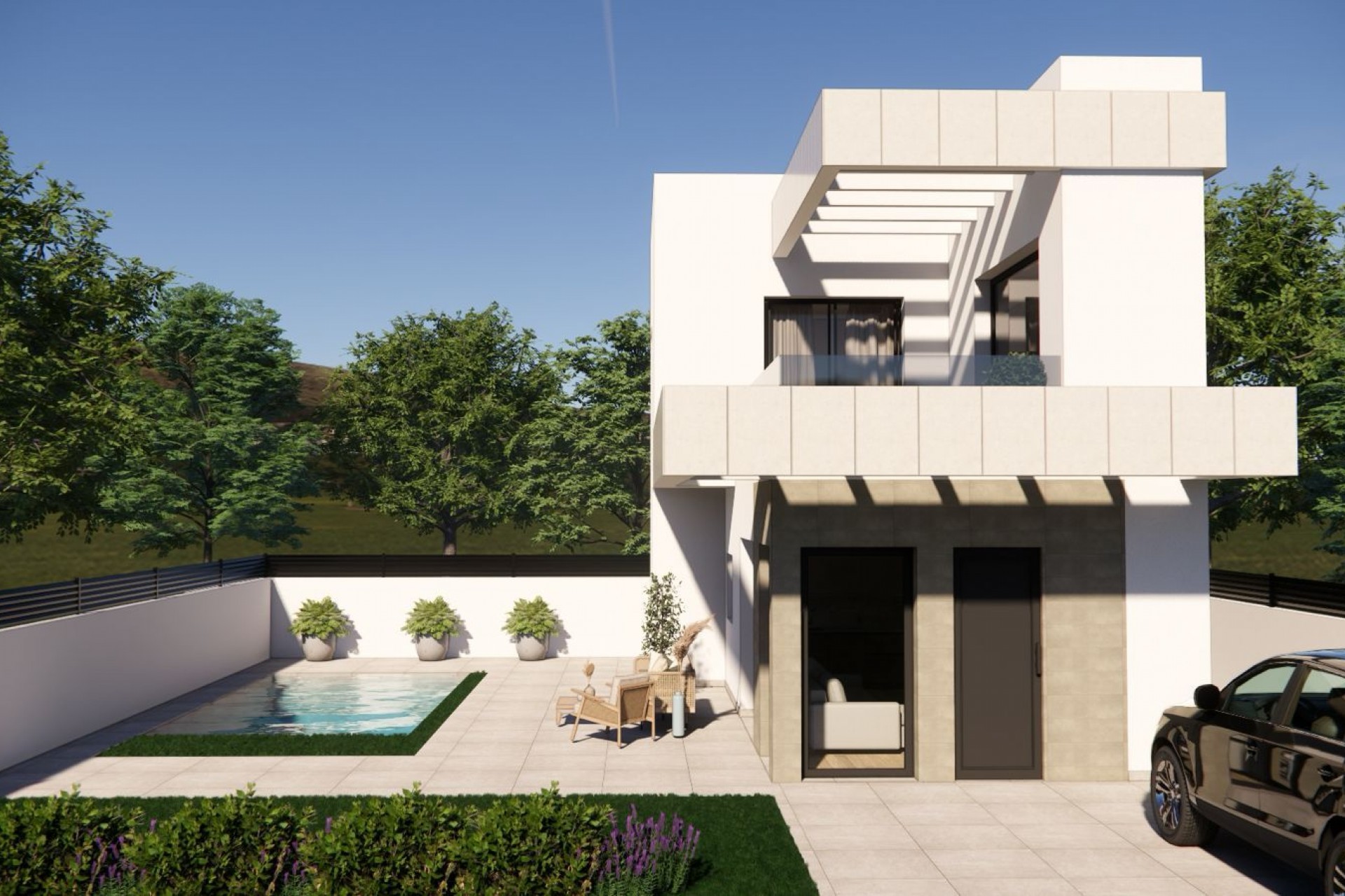 We are pleased to offer these beautifully designed modern Villas situated i on the edge of the popular Village of Los Montesinos, within walking distance to the village and amenities. These attractively designed homes are designed for comfort incorporating natural colours on the exterior to create a feeling of warmth. The ground floor level provides an open style lounge / dining area and fitted kitchen with patio doors onto the garden and pool area. Ground floor double bedroom with separate family bathroom. The first floor provides two further double bedrooms with fitted wardrobes, family bathroom and patio access from both bedrooms onto the sun terrace. The garden area is fully private with security access, off road parking and lovely pool included in the price. Also included with the Villa is underfloor heating in all bathrooms, shower screens, bathroom furniture, electric white goods including inset fridge, fan, hob, oven, washing machine, dishwasher, electric aluminium blinds, Sun guard on all windows, built in wardrobes, pre-installed air conditioning throughout and security door. This property is close to beautiful beaches, shopping centres, golf, beautiful countryside and much more.