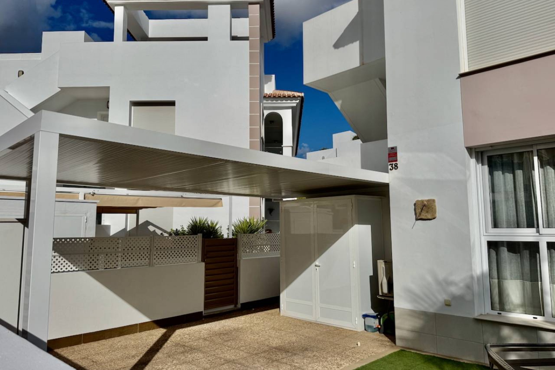 We are delighted to bring to the market this fabulous 2 Bedroom 2 Bathroom Ground Floor Apartment situated in Pueblo Bravo, Ciudad Quesada. The property is in a fantastic location within a gated community in a quiet street with a lot of outside space, off road parking, ducted air conditioning and is in walking distance to a supermarket, shops and bars. It benefits from a beautiful American-style kitchen, pen plan lounge and dining room which leads onto a large back garden overlooking the communal pool and garden area. There is a large family bathroom and double bedrooms. The master bedroom benefits from its own ensuite bathroom, that has patio doors leading to the front garden. The property benefits from a driveway and plenty of storage areas. The furniture contents are negotiable, so there is the option to buy the furniture if the new owners so wish. This is a fantastic property if you are looking for a property in Spain