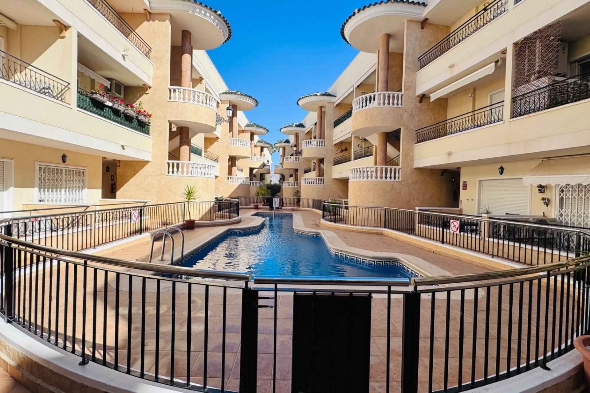 Discover the perfect blend of space and light in this beautifully presented three-bedroom penthouse, situated in a sought-after building in the heart of Jacarilla. From the moment you enter this second-floor corner apartment, you’ll be struck by the generous proportions and the abundance of natural light. The expansive living area offers ample space for both dining and lounging, flowing seamlessly onto an east-facing terrace—the perfect spot for your morning coffee. The modern, fully-equipped kitchen features a range of quality units and integrated appliances, including a fridge-freezer, dishwasher, and washing machine. The thoughtful layout includes an inner hallway leading to three spacious bedrooms. The master suite is a true retreat, boasting built-in wardrobes and a full ensuite bathroom. Both guest bedrooms enjoy direct access to a private, sun-drenched terrace. The "wow factor" continues upstairs with a magnificent private solarium. Offering breathtaking views of the mountains and rolling countryside, this massive rooftop space features plenty of room for sunbathing and a covered dining area—ideal for hosting summer BBQs in the shade. Key Features: Corner Position: Flooded with natural light and multiple terraces.Amenities: Air conditioning, underground parking, and a private storage room.Leisure: Access to a pristine communal pool and gardens. The Location:Step outside and you are moments away from the historic Palacio y Jardín del Marqués de Fontalba. With 20,000m² of fountains, sculptures, and lush greenery, it’s a tranquil oasis for your daily walks. Jacarilla itself is a vibrant village offering everything you need at your doorstep, from charming bakeries and local butchers to lively restaurants and essential services.